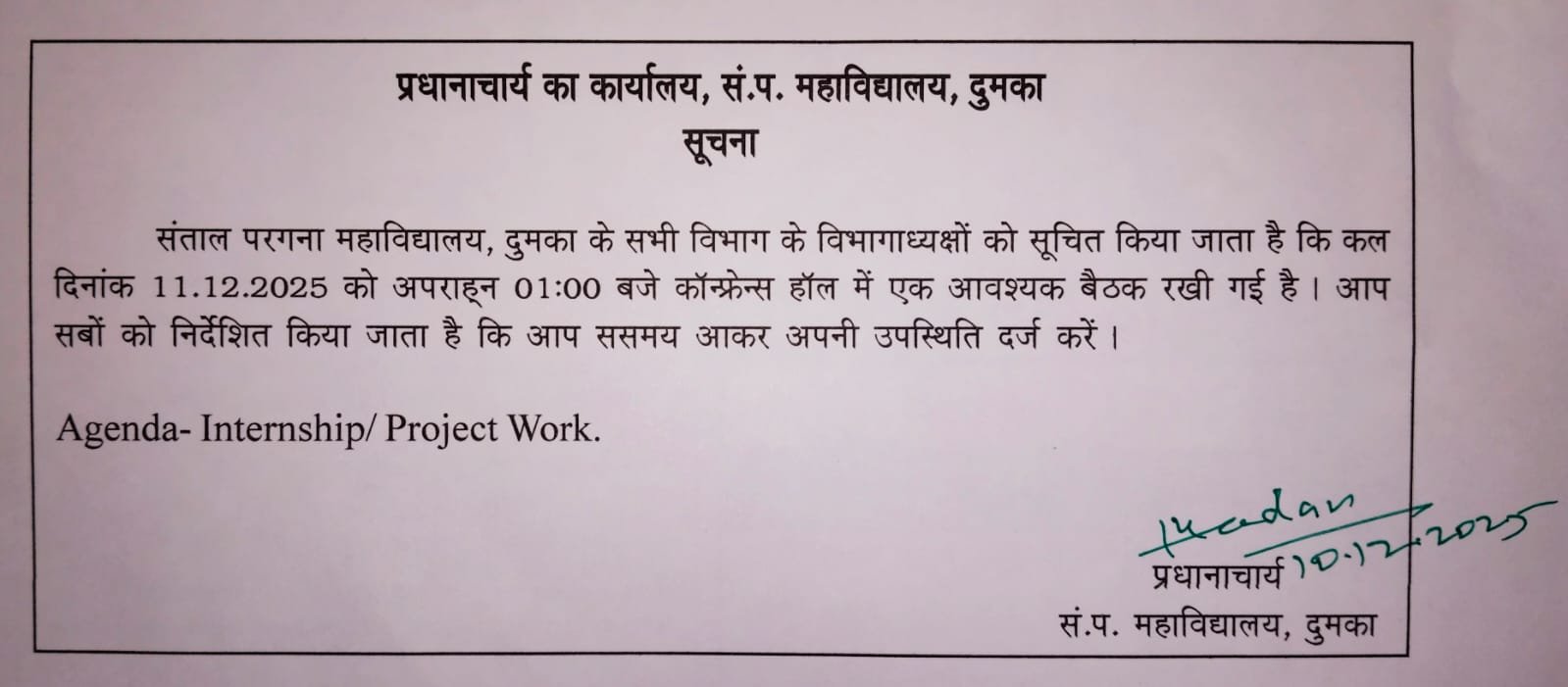 Santal Pargana College, Dumka has a continuous record of standard teaching, fair examinations and strict discipline for the last 60 years.