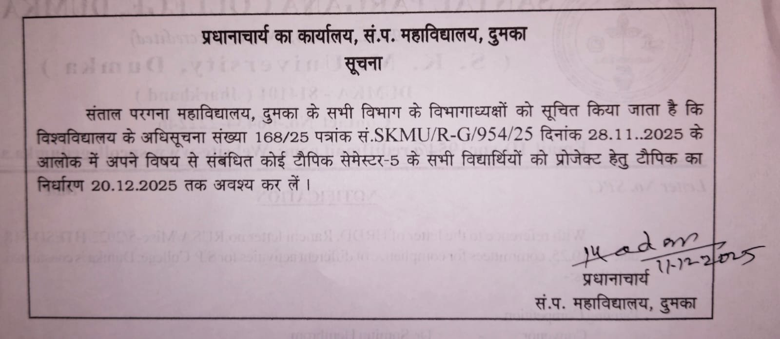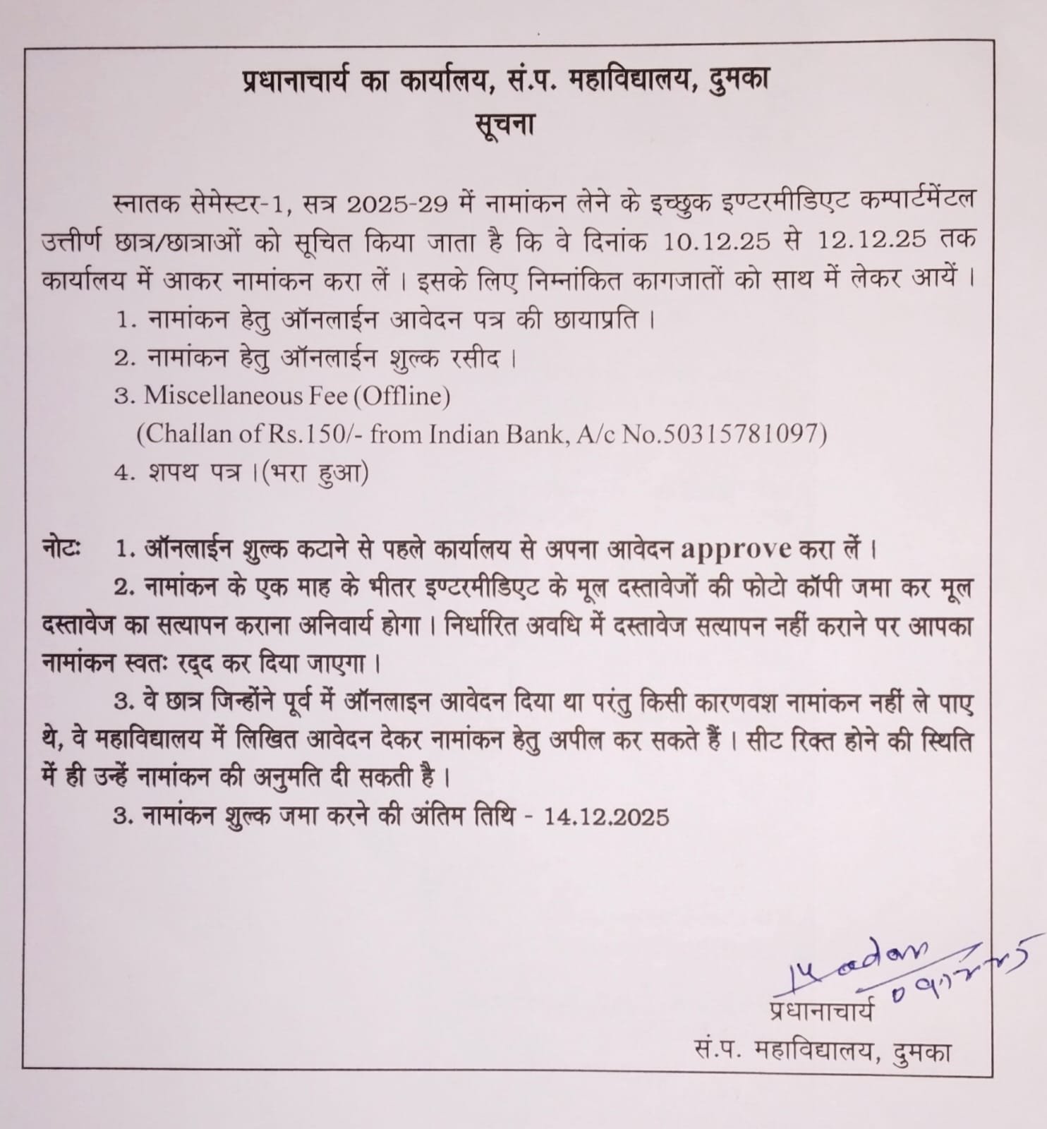 Santal Pargana College, Dumka has followed need of the hour and started online application and enrollment of students through its website.